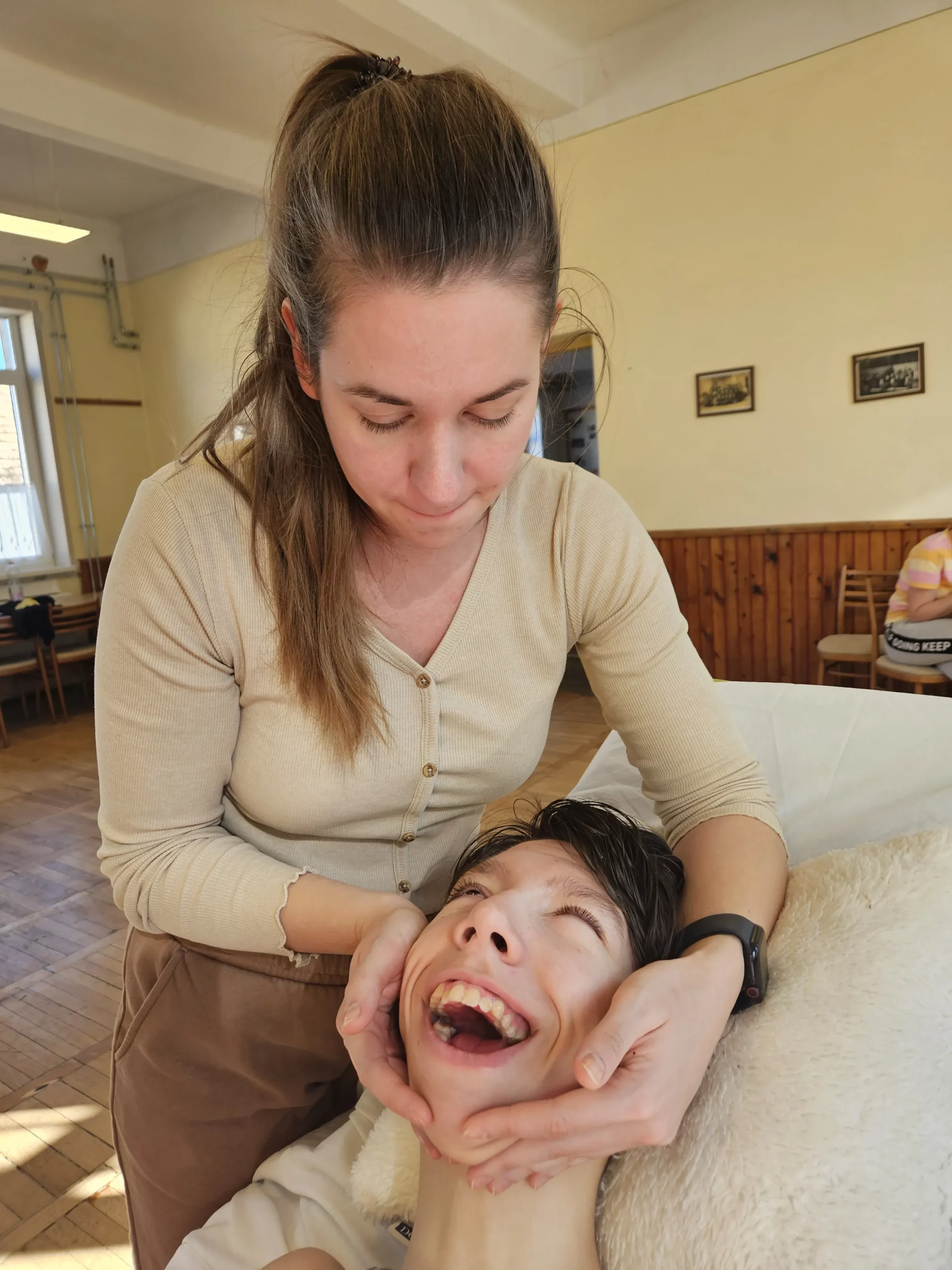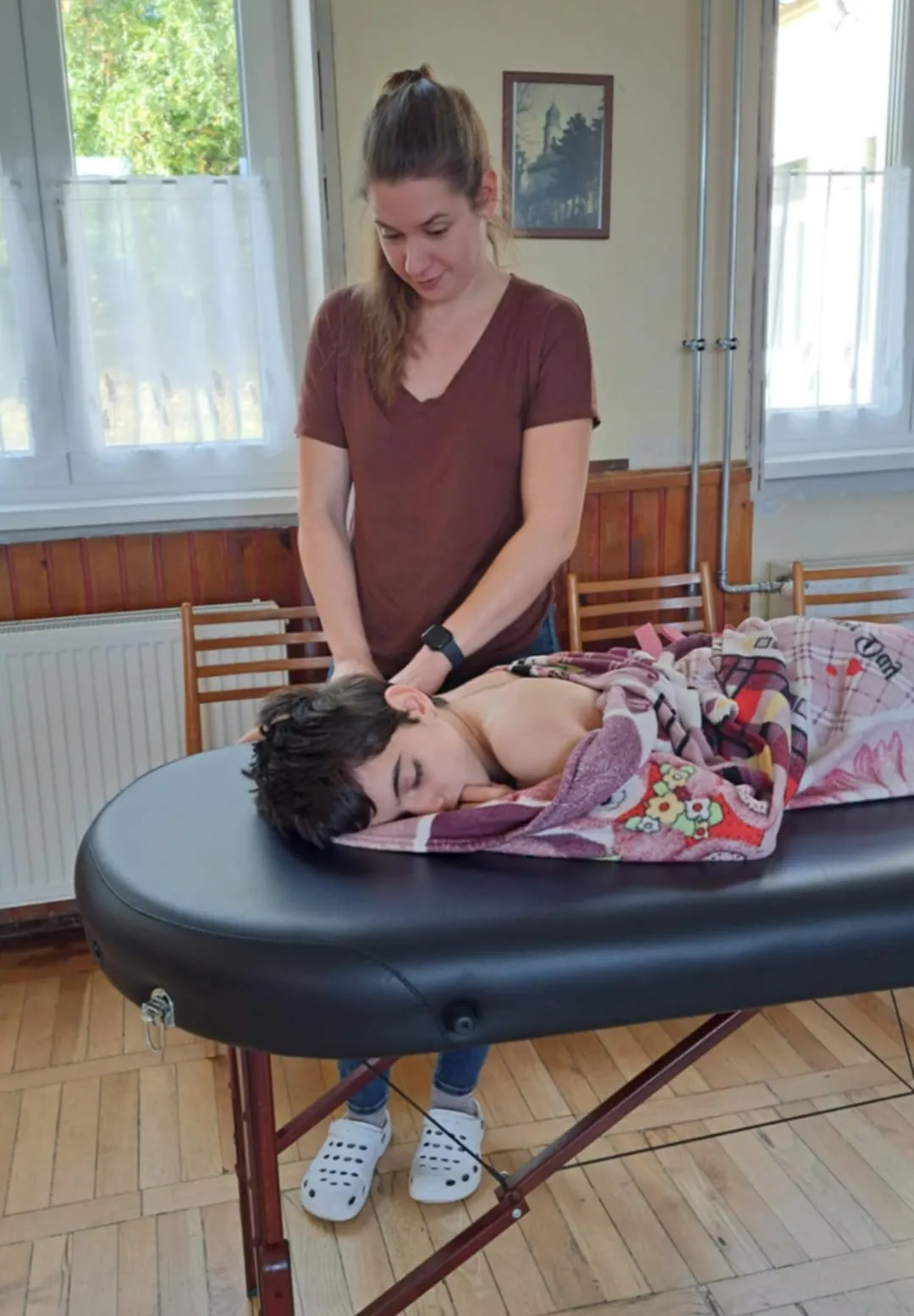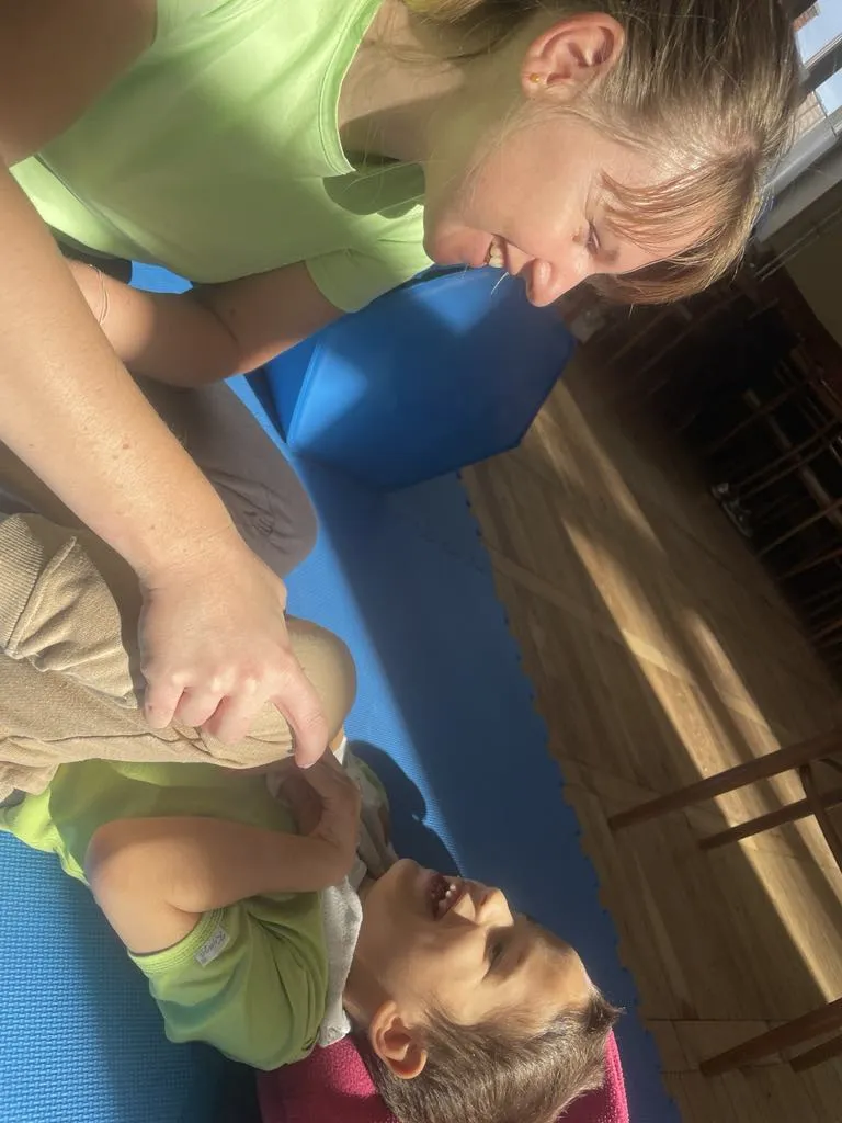 Kicsik és nagyok érkeztek 2×50 perc egyéni órára elsőként Pfaffenrot terápiára Langné Felföldi Annához, majd a lazítás, nyújtás után következett a munka Gönye Lili konduktor-gyógytornásszal.