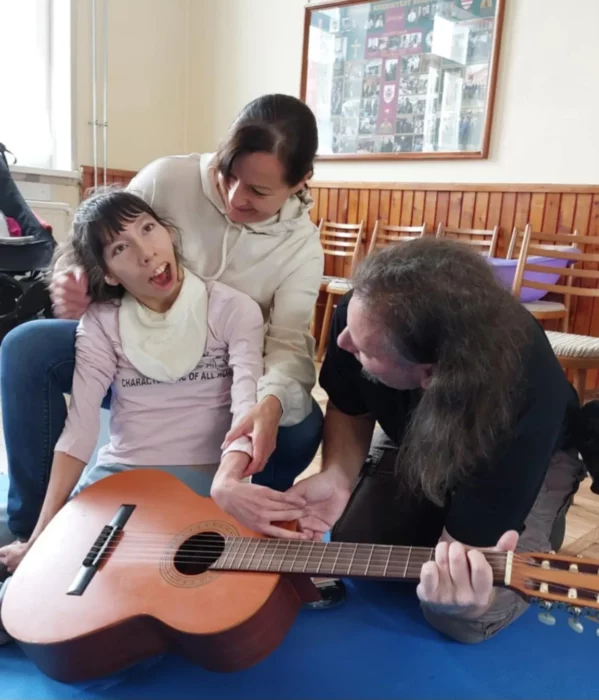 Programok Kezdőoldal /  „Klasszikus és népi hangszerek a zeneterápia színpadán” címmel útjára indított programunkban havonta egy alkalommal zeneterápiás foglalkozást tartunk. A projekt különlegessége, hogy hét friss diplomás zeneterapeuta vesz részt benne, közülük érkeznek ketten minden hónapban állandó konduktorunkkal, Langné Felföldi Annával a közös munkára. Felkészítő mentoruk a kacifántosainkat régóta ismerő Gál