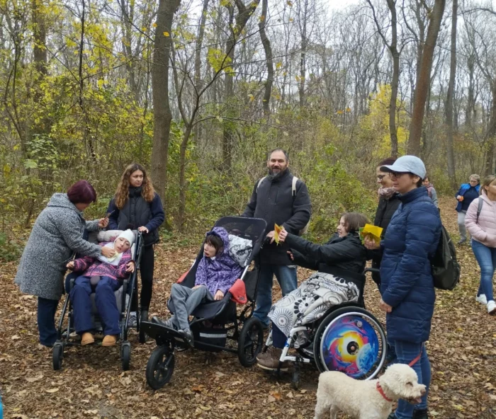 Programok Kezdőoldal /  November elején június után ismét erdőterápiára gyülekeztünk a győri Püspökerdőben. Az őszi erdőben is izgalmas meghívásokat kaptunk Péter Pál Péter terapeutától.Szagoltunk, csendben voltunk (ezt azért még gyakorolnunk kell), és csak az erdőre figyeltünk, színeket kerestünk, zenéltünk, és levéleső hullott a gyerekekre…. ez tetszett nekik nagyon. Pali és a