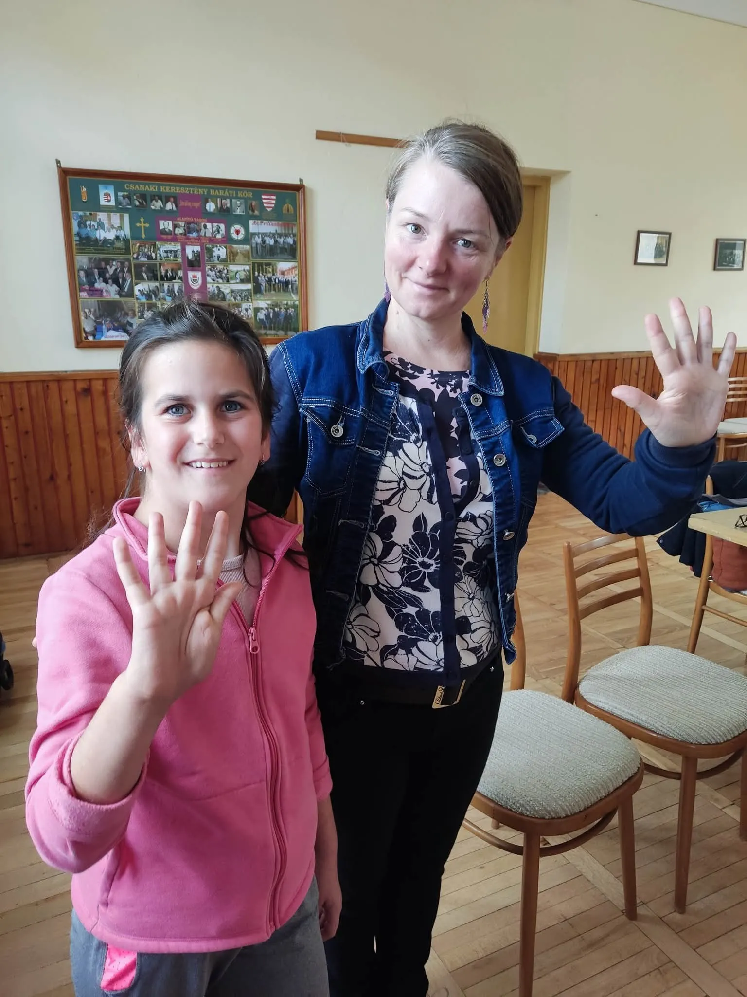 Kriszti kézjeles kommunikáció oktatóként PKK Kézrekreációs felméréseket végzett nálunk. A módszer célja, hogy a kezek, ujjak apró és finom mozgatásán keresztül azok eredeti állapotát helyreállítsa.